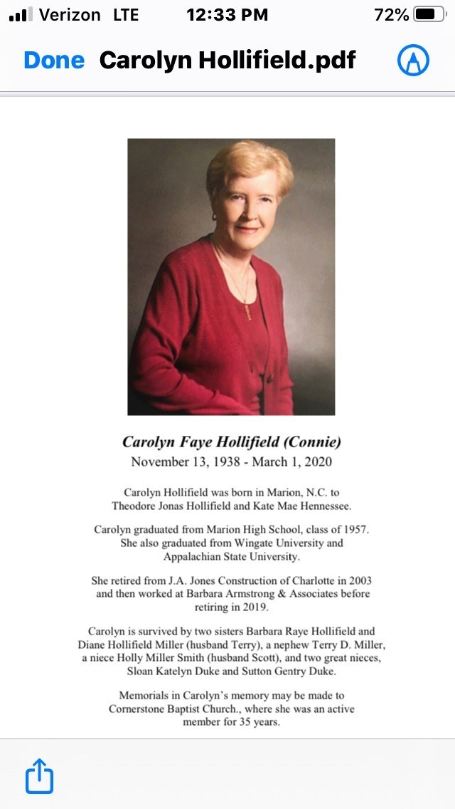 Carolyn Hollifield Obituary Charlotte Nc